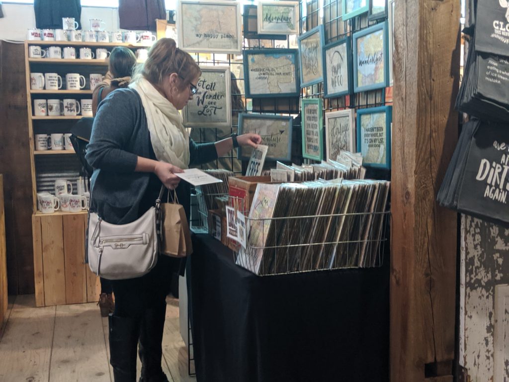 A guest browses a selection of prints from DK Design Studio, which is based in Iowa.