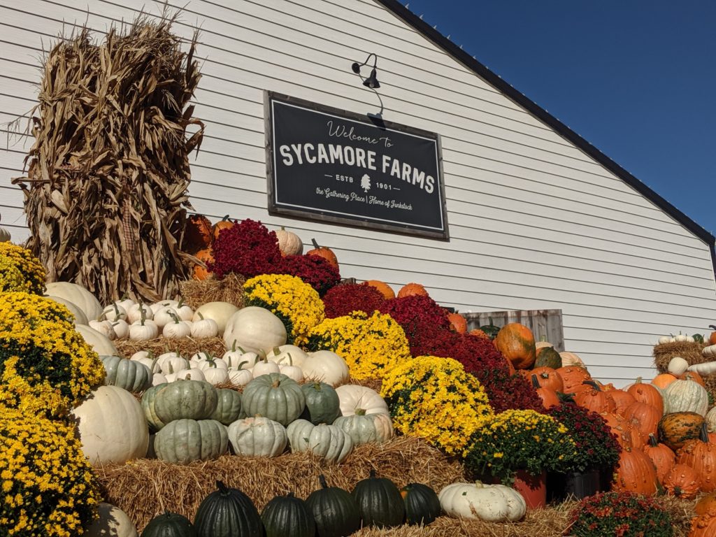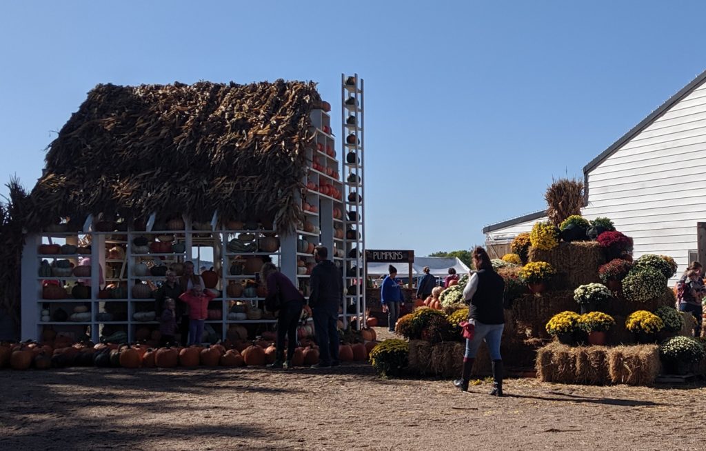 The harvest theme is seen throughout the farm, with sheaves of corn, hay, flowers and gourds decorating the farm. It’s enough to get anyone into the fall season.