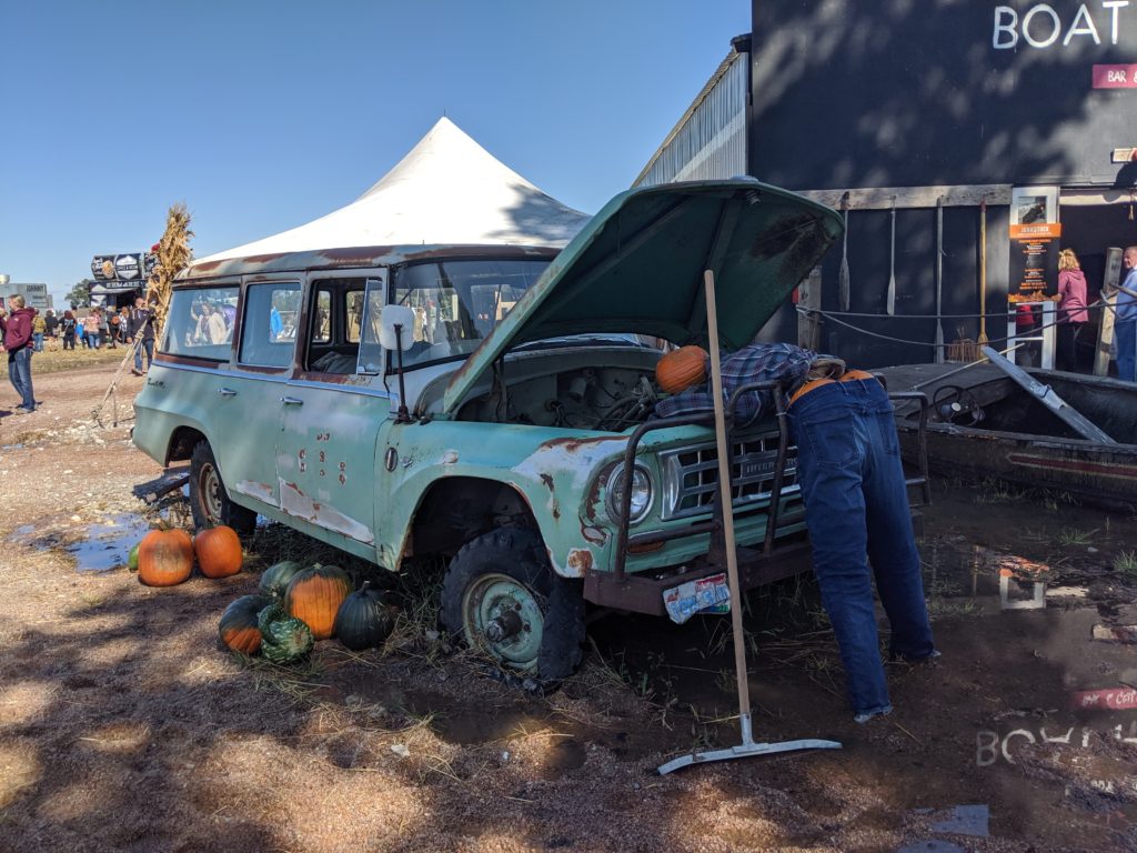 Dotted around the farm are little creations like a broken-down car and the pumpkin man.