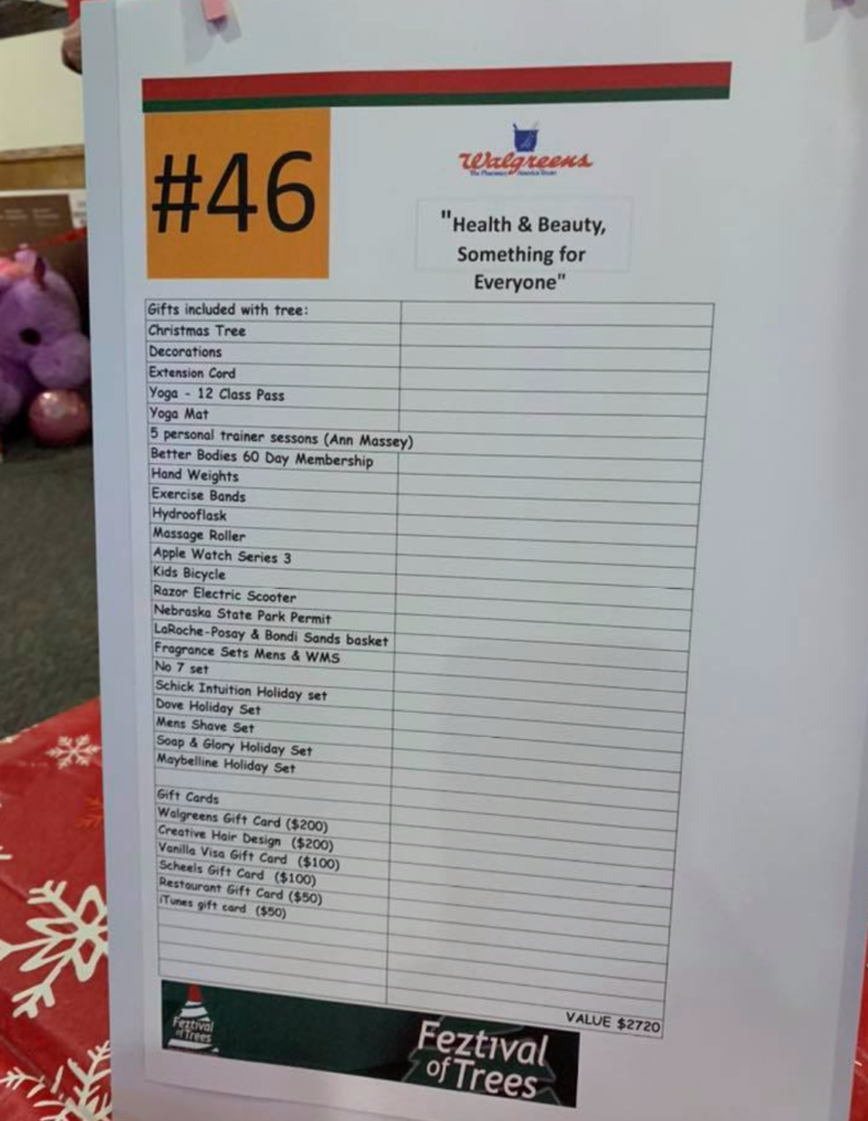 There are over 60 trees that have gifts from sponsors who have donated a tree filled with prizes and gifts for visitors to win. Each tree has a theme with a minimum prize winnings valued at $500 up to the Holly Jolly Nebraska Lottery Jackpot tree valued up to thousands of dollars in lottery winnings.