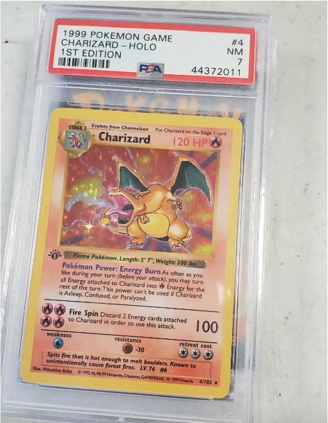 The 1999 First Edition Charizard Pokémon Trading Card is going for a large amount of money online. Photo by Jessica Salinas/The Omaha News.