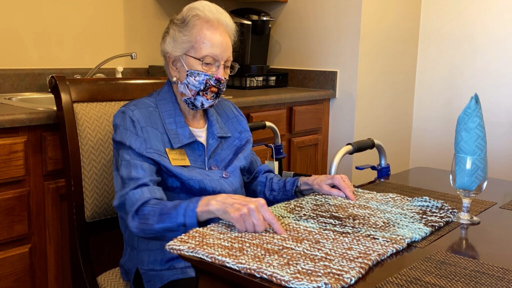 For Richmont resident Donna Larson, she didn’t let the pandemic prevent her from doing the things she loves the most, knitting cat blankets, solving crossword puzzles and keeping a positive flow in the community with fellow residents and staff.