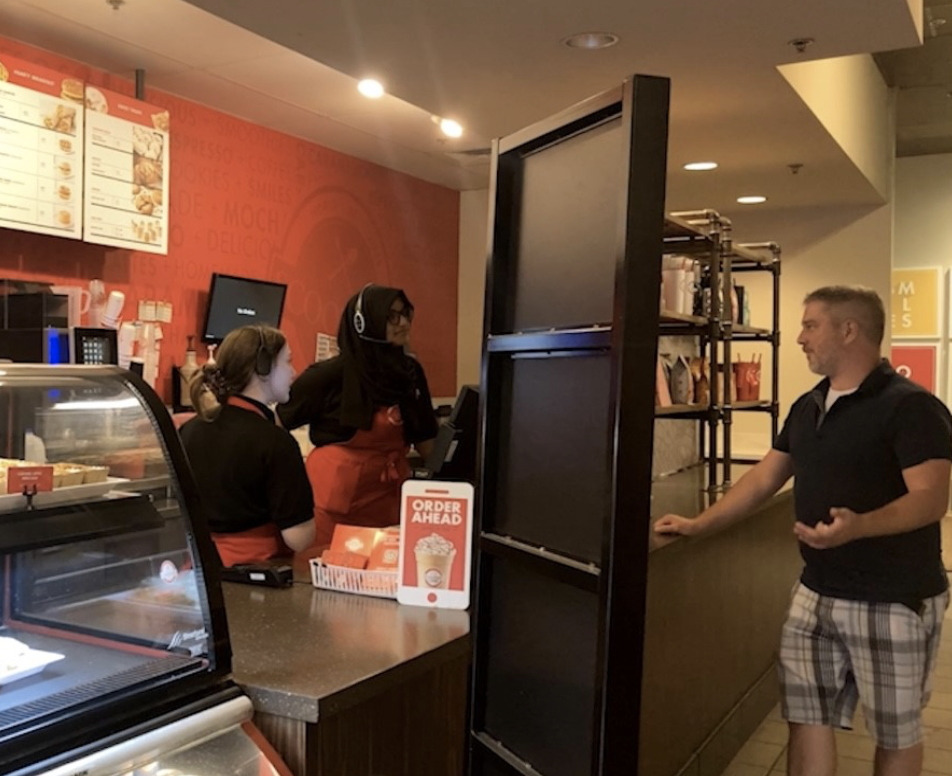 Scooters Coffee Baristas interact with a regular customer at their 63rd and Center St. Location on Thursday, Sep. 8th, 2022. (Photo/Natalie Veloso)