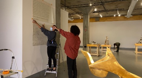 Staff prepare the newest exhibit, “MONUMENTAL” that will be showcased at KANEKO in downtown Omaha, Neb. On Thursday, Oct. 6, 2022. (Photo/Stephanie Veloso)