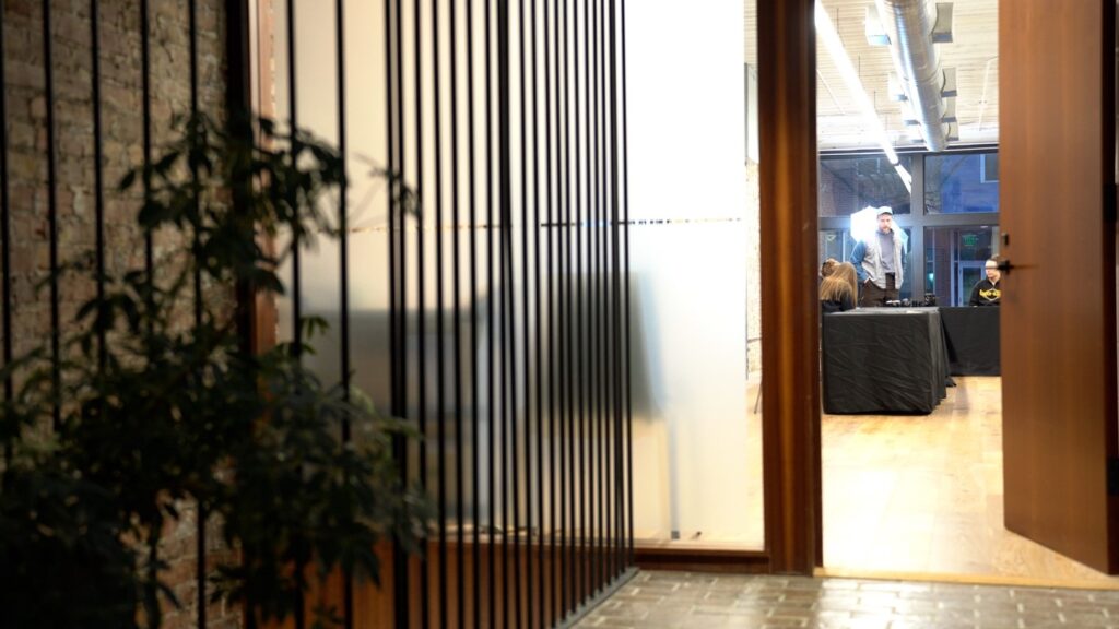 An “Intro to Film Cameras” workshop attendee poses for a lit portrait at The Union for Contemporary Art on Feb. 6, 2025. Andrew Smith/The Omaha News