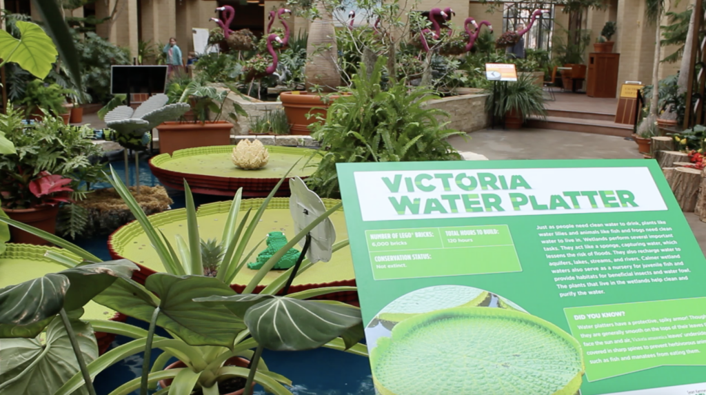 Lauritzen Gardens is a 100-acre garden hidden in the heart of Omaha with over 20 different themed gardens. The LEGO exhibits are woven into the home of the plants, with signs featuring educated descriptions. Hands-on activities are also available for children, encouraging them to participate in the fun.
