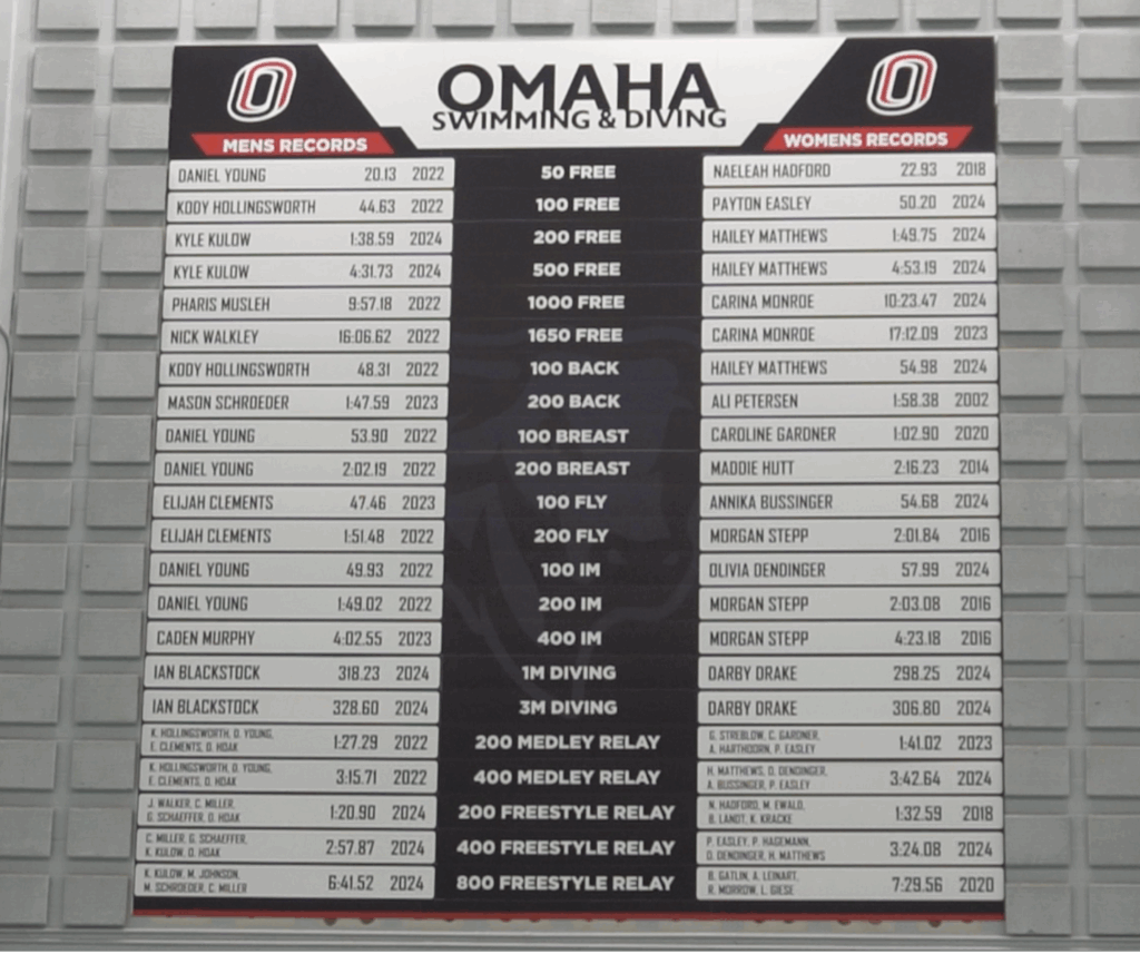 In May 2025, the NCAA recognized UNO with perfect Academic Progress Rate scores in 11 sports including both men’s and women’s swimming and diving for the 2023–24 academic year. This underscored the department’s commitment to pairing athletic success with academic distinction.