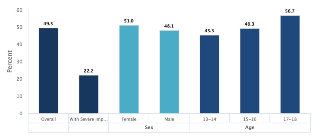 Photo 1 caption: Graph detailing the Lifetime Prevalence of any Mental Disorder among Adolescents. (Courtesy of National Institute of Mental Health/NIMH)