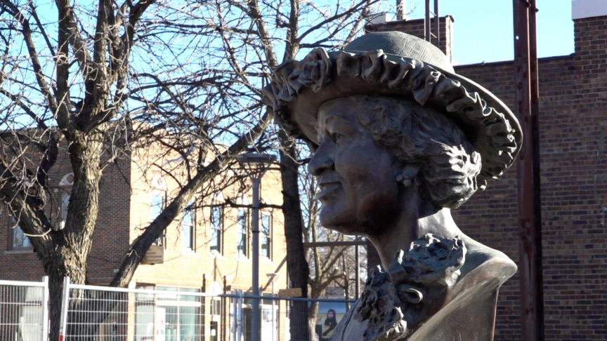 A bust of Mildred D. Brown at the Omaha Star Park in North Omaha, Neb., Feb. 26, 2026